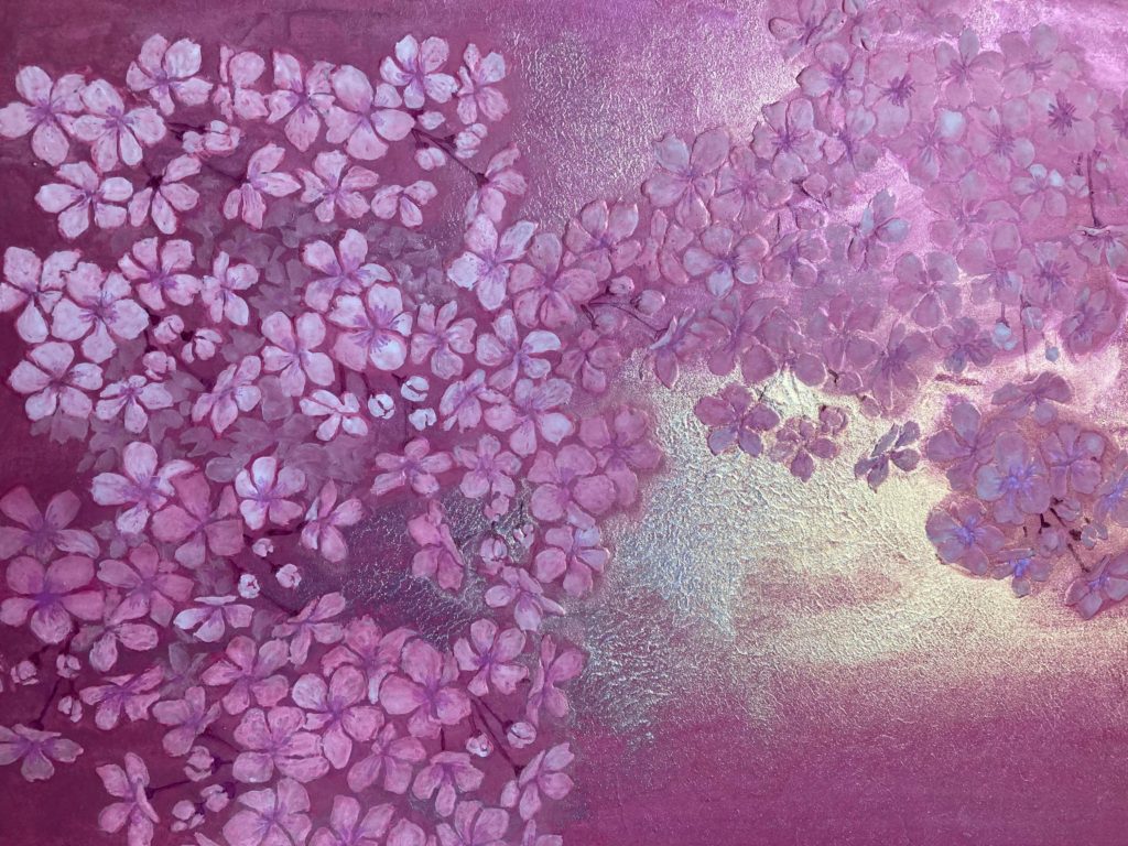 観た人が、ホッと安心できる絵、ずっと観ていたくなる絵、癒される絵、そんな絵を描き続けたい、というIZMINさん。その言葉を聞きながら、IZMINさんの心がそのまま絵に表現されているんだなと感じ、多くの方にぜひIZMINさんの描く日本画を観てもらいたいなと思いました。